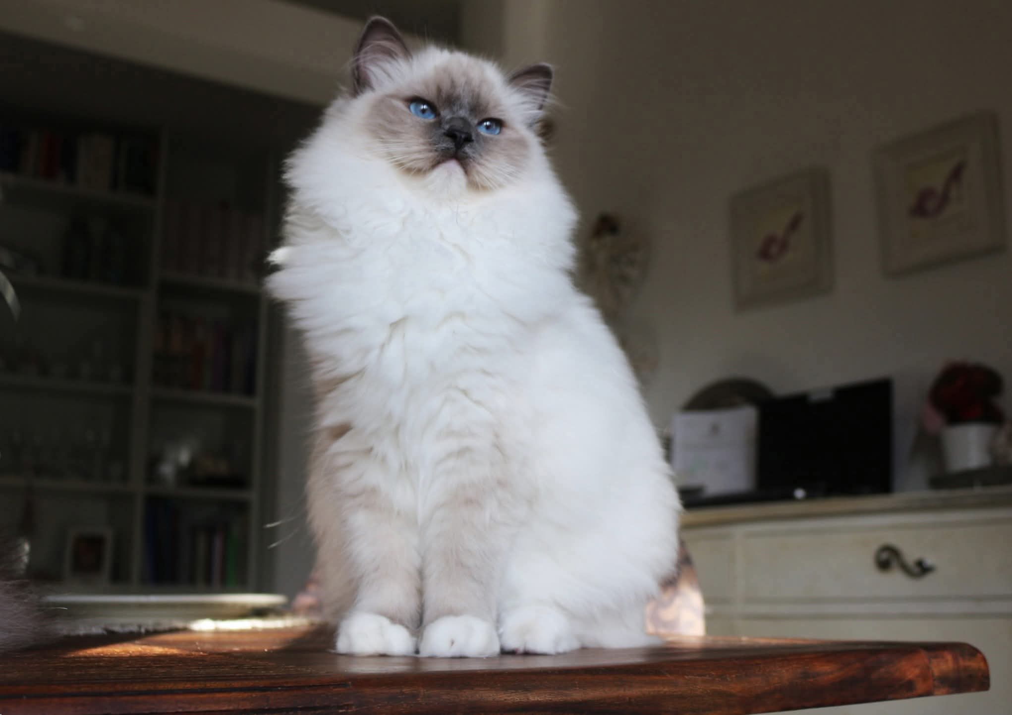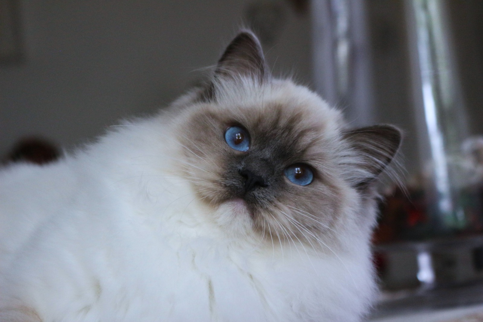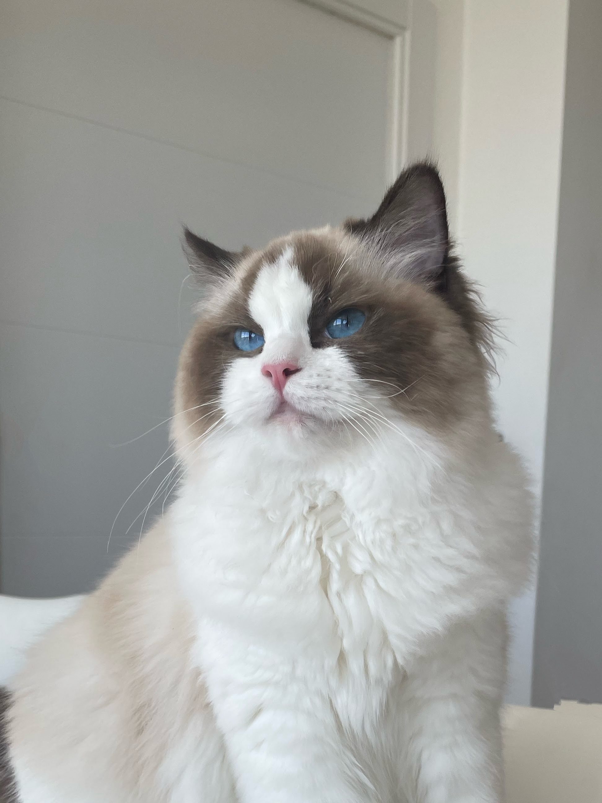 Esta preciosa gata seal bicolor llega desde el espacio de cria Ragissa en Polonia. Elegimos este criadero por la excelente calidad genética en sus líneas clásicas de cría, estupenda morfología y el increíble color de ojos que caracteriza a sus gatos.